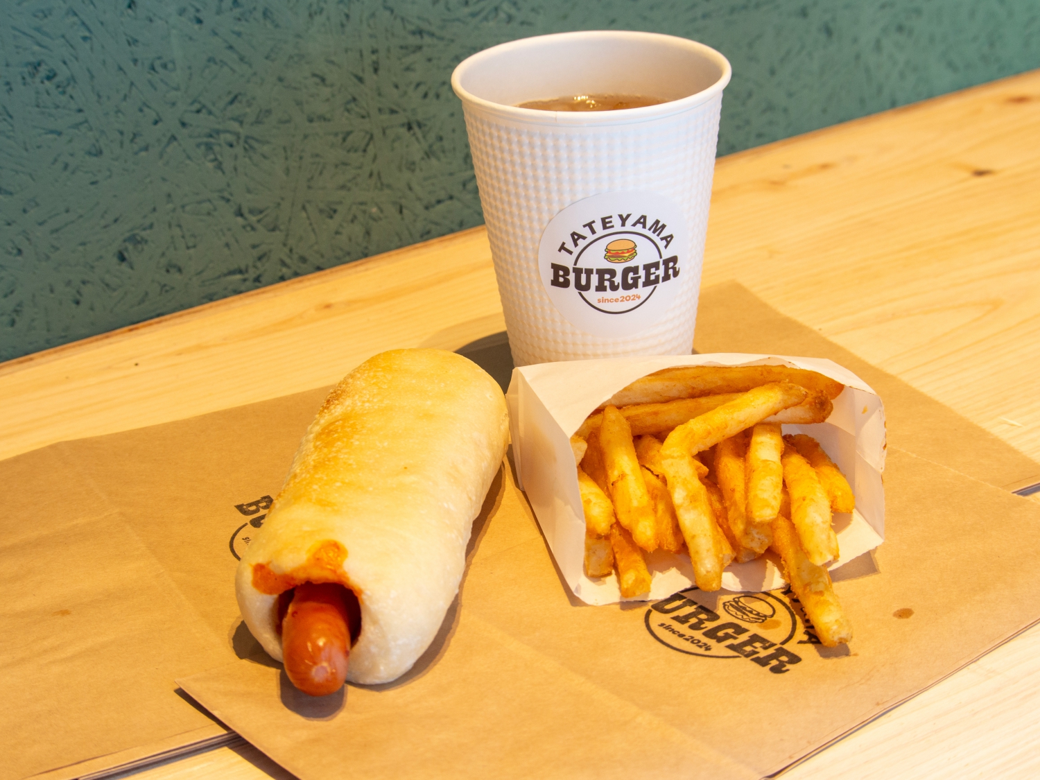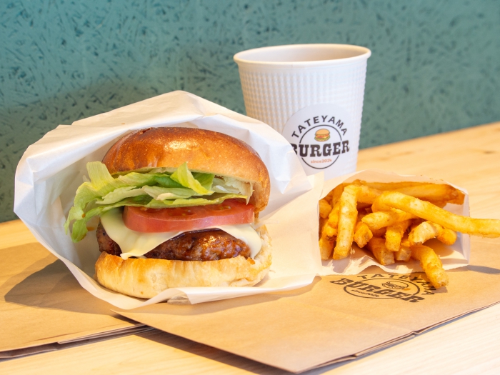 道の駅グリーンファーム内にオープンした「TATEYAMA BURGER」では、バンズにもパティにもこだわり抜いたオリジナルハンバーガーを筆頭に、ランチや軽食にぴったりのオリジナルワンハンドグルメが登場。
