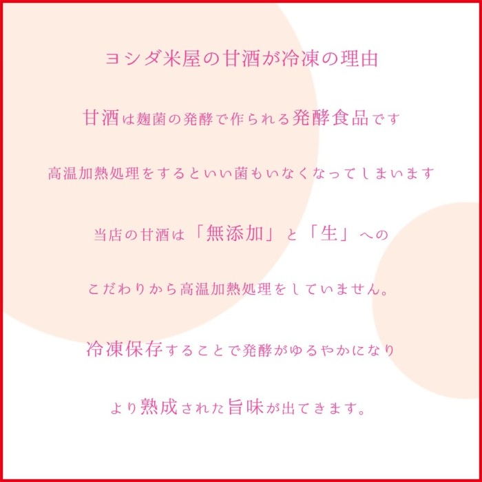 本商品は『火入れ』という作業を行っていないため甘酒が生きています。