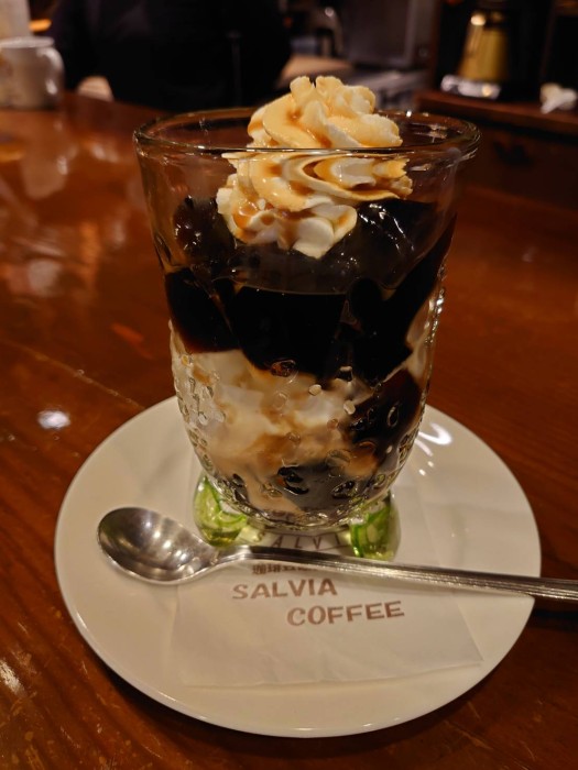 自家焙煎のイタリアンロースト豆をじっくりとネルドリップしたアイスコーヒーの風味豊かなコーヒーゼリー。