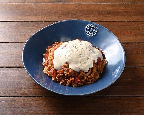 濃厚な旨みがぎゅっと詰まったボロネーゼソースに、とろ~りとろけるチーズをたっぷりトッピング。