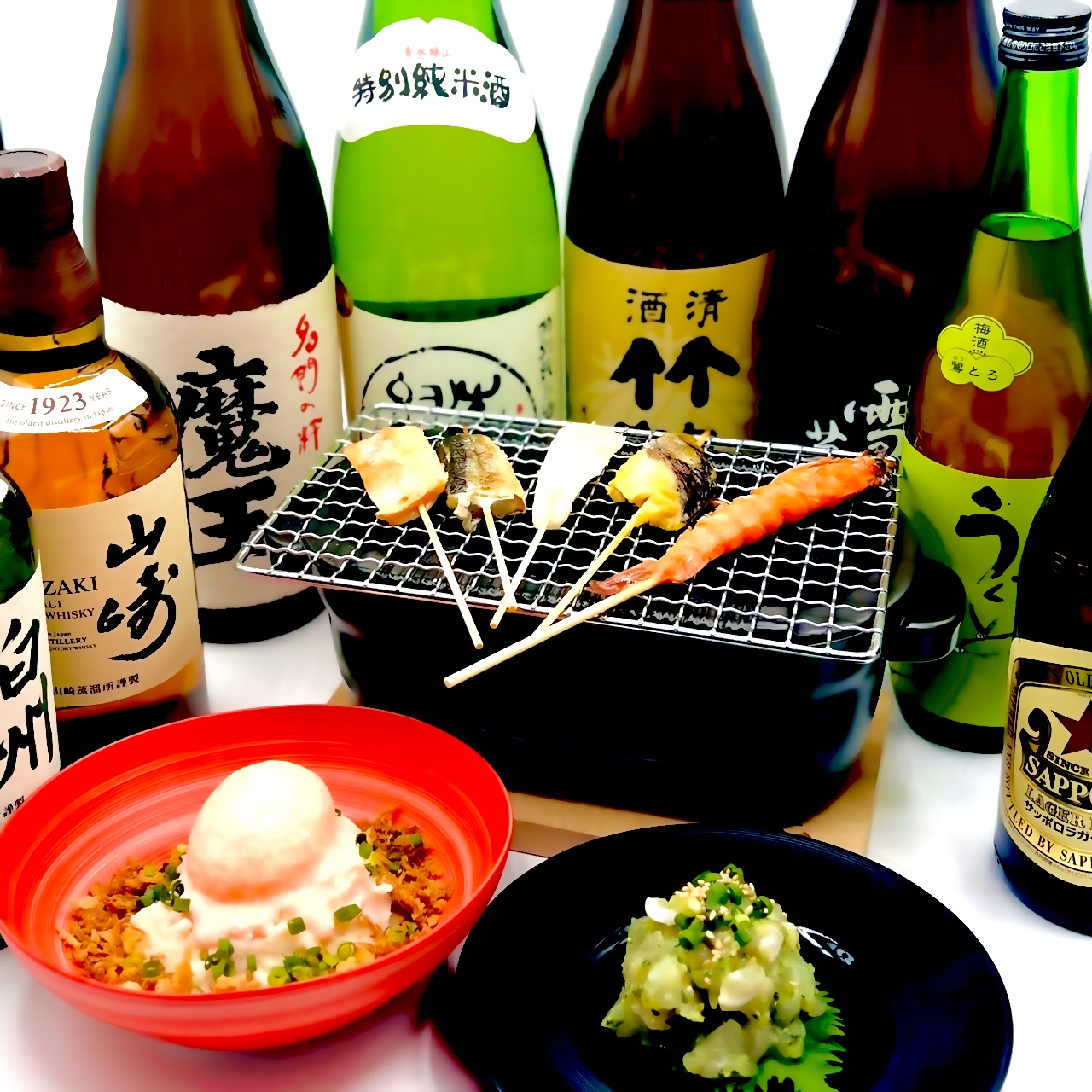 焼き魚を気軽に召し上がっていただくために、骨を取り一口でお召し上がりいただける魚の串焼きです。塩焼き・酒粕・西京みそ・みりん等、それぞれ違った味と魚を1皿で提供します。魚種は日によって変わります。