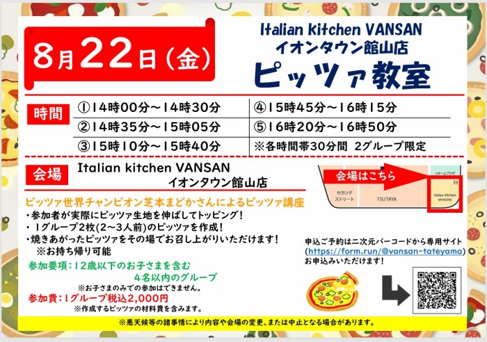 Italian Kitchen Vansan イオンタウン館山店 ピッツァ教室
