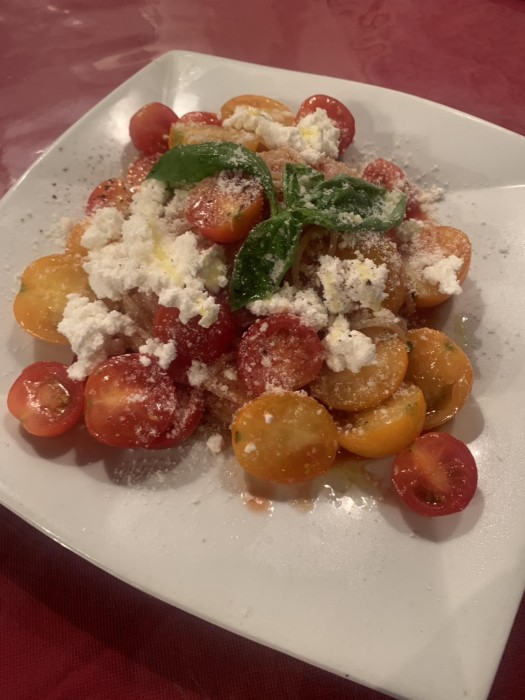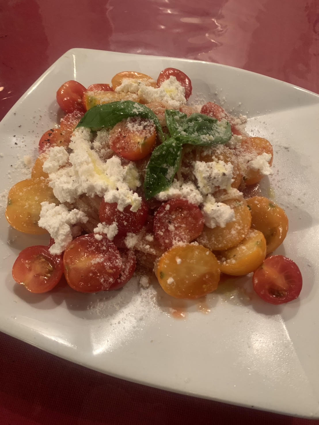 イチオシのフレッシュトマトの冷製パスタは常連様が冬場でもオーダーされる絶品のヒトサラ。ぜひご堪能ください。