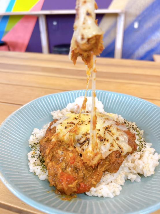 濃厚なサバカレーとバーナーで炙ったチーズ!