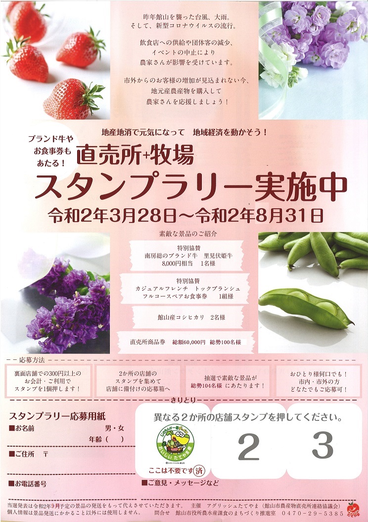 【3/28(土)~8/31(月)】地産地消で元気になって 地域経済を動かそう!直売所スタンプラリー実施中!